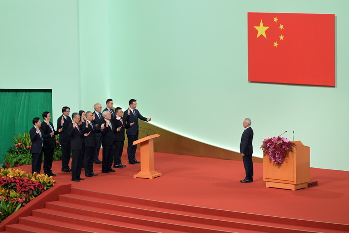 岑浩輝則感謝習近平主席和中央政府的信任。表示自己將帶領新一屆特區政府奮進有為、銳意革新,團結社會各界,奮力開創澳門「一國兩制」成功實踐的新局面。