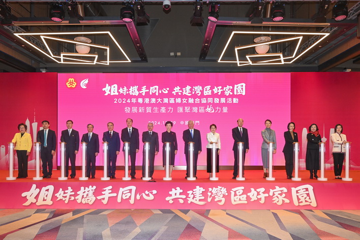 諶貽琴致辭時表示,全國婦聯自2020年正式啟動「姐妹攜手同心 共建灣區好家園—粵港澳大灣區婦女融合協同發展」活動,已經在廣州、深圳和珠海成功舉辦三屆,取得了豐碩成果。今年活動首次在澳門舉辦,來自粵港澳「9+2城市」大家庭的姐妹們,聚焦「發展新質生產力 匯聚灣區她力量」這一主題共話新氣象、共謀新發展,必將把大灣區婦女交流合作推向嶄新高度,為大灣區高質量發展注入蓬勃動力。