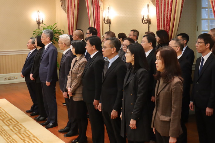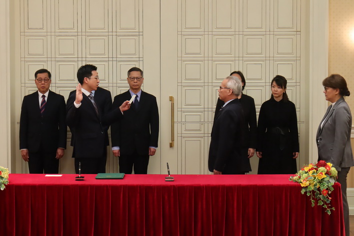 就職儀式周一下午在政府總部黃廳舉行,首次擔任立法會選管會主席的中級法院法官盛銳敏,以及檢察院主任檢察官黎裕豪、公職局局長吳惠嫻、明年元旦日起將由市政署管委會委員升任副主席的麥儉明、財政局副局長何燕梅及新聞局副局長黃樂宜,在行政長官監誓下逐一宣誓就任新一屆立法會選舉管委會主席及委員,名政府主要官員、行政會成員和立法會議員出席見證。