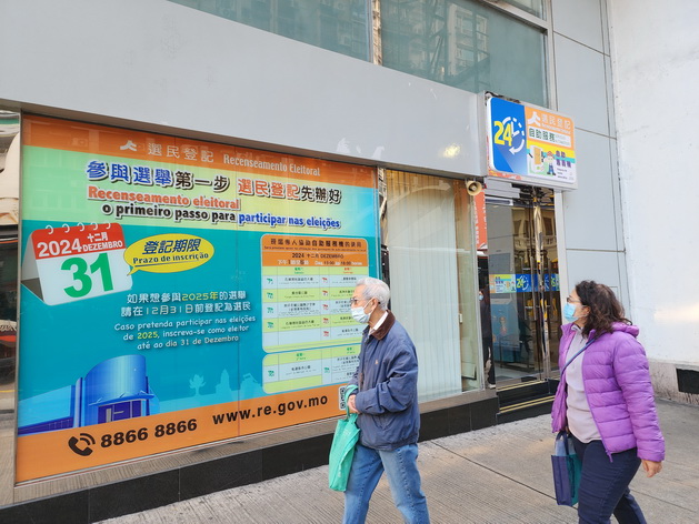 公職局周二將於三盞燈休憩區及氹仔花城公園側之空地(近哥英布拉街)設流動站,提供服務的時間為下午一時至六時。除流動站外,符合登記資格的居民亦可於選民登記自助服務機進行登記,24小時服務點包括政府24小時自助服務中心、澳門國際機場、交通事務局(馬交石)服務專區、仁伯爵綜合醫院以及公共行政大樓的選民登記專區,並提醒由於12月31日為本年選民登記的最後一天,經自助服務機辦理的選民登記,必須於當天的23時59分前完成登記手續。