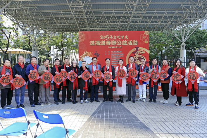 【本報消息】新春佳節,金蛇賀歲,為進一步推動社區和諧共融,豐富居民節日文化生活,營造歡樂祥和的節慶氛圍,由民眾建澳聯盟主辦,澳門大灣區經濟促進商會、澳門中山坦洲工商聯合會、澳門二龍喉詩友會、中山市五桂書法院、珠海市硬筆書法協會、坦洲鎮書法美術協會、民眾青年會合辦的「2025金蛇賀歲送福送春聯公益活動」於上周六在祐漢公園舉行,現場十多位書法家揮毫潑墨,為居民書寫寓意吉祥的春聯和福字,送上新春的美好祝福。