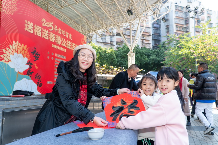 活動上十多位書法家攤位有序排開,筆鋒起落,居民熱情高漲,一幅幅寓意吉祥的春聯迅速寫好,現場氛圍其樂融融,同時,現場亦設有書法家教學環節,為孩童教授「福」字書法,備受家長及孩童喜愛。有參與的居民表示,手寫揮春相比購買現成的對聯更有「儀式感」,別具意義,加上現時能一睹書法家的書法藝術,感受到濃厚的新春祝福,倍感欣喜,期望今後能有更多不同的書法活動走進社區,提升居民對中國傳統文化及書法藝術的認知和興趣,豐富閒暇生活。