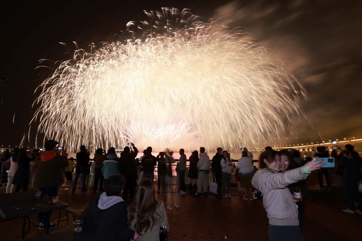 「歡樂春節 靈蛇獻瑞煙花匯演」將會於年初三晚上9時45分,即首場花車匯演當晚在旅遊塔對出海面上演,第二場和第三場將會於2月4日年初七「人日」及2月12日元宵節晚上九時正上演,三場煙花表演各15分鐘,向居民和旅客送上節日的祝福。