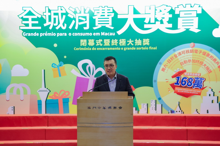 【本報消息】由特區政府聯同澳門中華總商會於去年合辦為期13周的「全城消費大獎賞」大型促消費活動,1月21日於澳門中華總商會何賢先生紀念堂舉行閉幕式及終極大抽獎。
