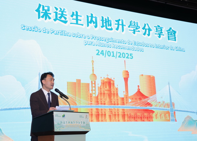 教青局局長龔志明致辭時表示,國務院印發的《教育強國建設規劃綱要(2024-2035年)》,圍繞辦強辦優基礎教育,增強高等教育綜合實力,培育壯大國家戰略科技力量。特區政府按照習主席指示的方向,推動澳門教育融入國家建設教育強國的戰略,培育青年成長成才。在國家教育部的大力支持和特區政府的推動下,內地已成為澳門學生在澳門以外的首選升學目的地。他寄語同學們牢記習主席的囑咐,積極融入國家發展大局追逐夢想,成為具備愛國愛澳情懷、國際視野和創新精神的時代新人。