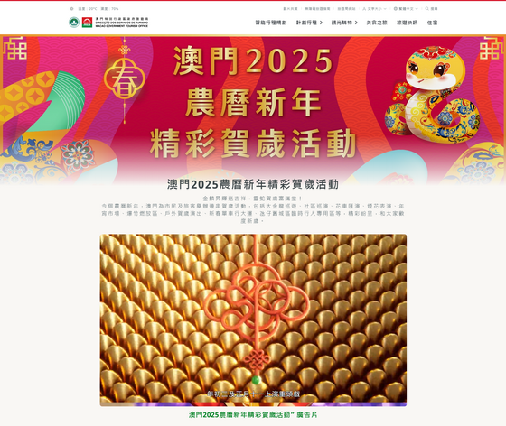 設有繁簡中文、葡語及英語版本的「澳門2025農曆新年精彩賀歲活動」專頁(www.macaotourism.gov.mo/article/cny/celebrations-2025)即日起開通,整合旅遊局、經濟科局、文化局、體育局及市政署等政府部門和旅遊業界舉辦多元賀歲活動的資訊及相關宣傳短片,方便居民和旅客隨時上網查閱,掌握澳門的新春節目。居民和旅客亦可透過「Experience Macao感受澳門」手機應用程式及相關專頁二維碼查看賀歲活動資訊。