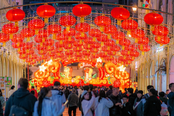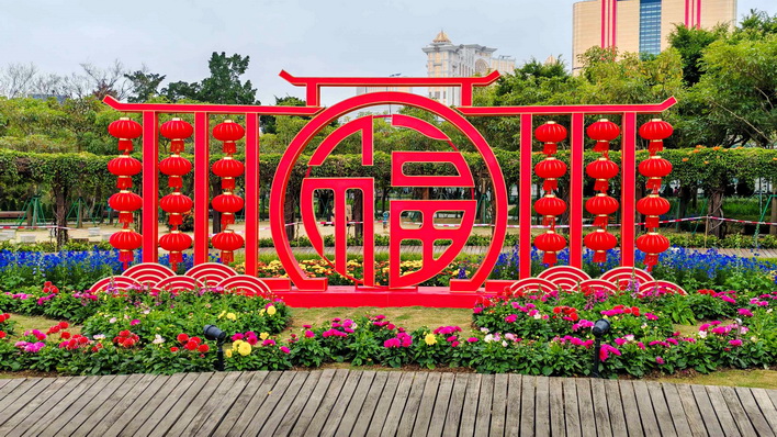 【本報消息】農曆新年即將來臨,市政署以「金蛇賀歲喜迎春」為主題,於全澳各區佈置賀歲燈飾及於龍環葡韻舉行慶新春主題花展,讓市民及遊客感受濃厚的節日氣氛,共度佳節。