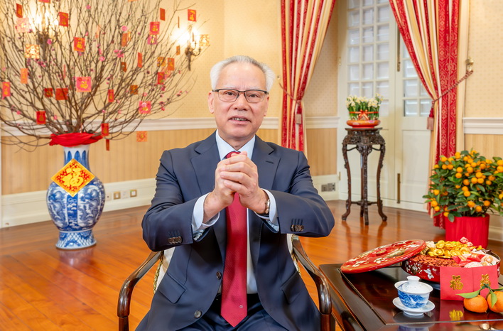 行政長官在乙巳蛇年新春賀辭中表示,蛇舞迎春,福氣滿門。在這個闔家歡聚、辭舊迎新的歡樂日子裏,他謹代表澳門特別行政區政府,向全體澳門市民和一直以來關心支持澳門發展的各位朋友們致以新春祝福,祝大家身體健康,萬事勝意,家庭幸福!願蛇年帶給我們智慧與力量,共同開創澳門更加美好的未來!