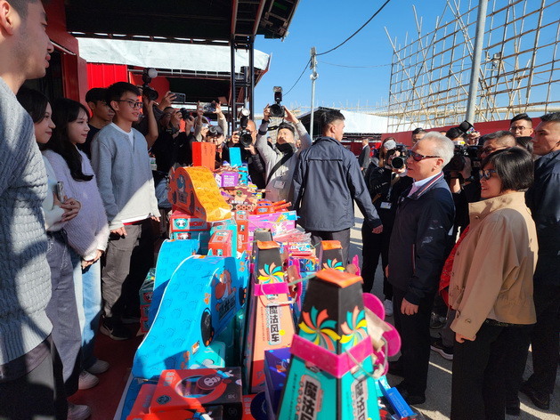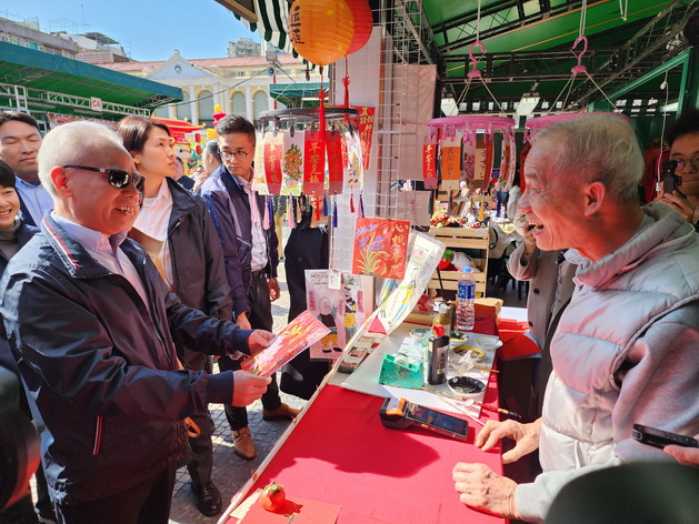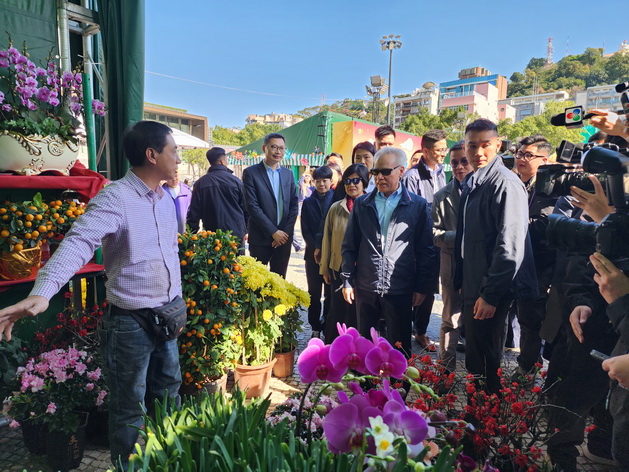 【本報消息】年廿九,行政長官岑浩輝伉儷下午首先走訪了塔石廣場年宵市場,並向多個攤檔檔主了解銷情和貨源,又關心青年人和學生的升學情況;隨後再轉往澳門半島及氹仔爆竹燃放區巡視,並燃放爆竹和火箭,他在燃放火箭前更透過直播鏡頭祝願全澳居民一切順利。