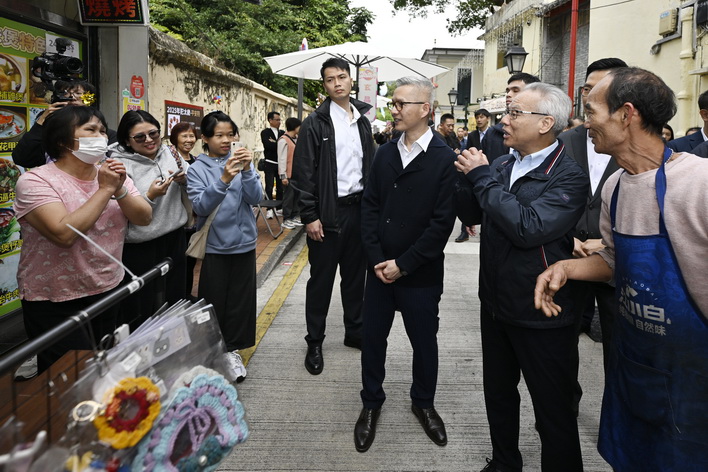 【本報消息】行政長官岑浩輝於大年初四(2月1日)走訪社區,實地了解節日期間商戶營運及市面情況,期間不時與途人、店主和店員互致新春祝福,氣氛熱鬧和諧。他表示特區政府將在廣納意見及充分掌握實況的基礎上,致力做好發展經濟與改善民生的各項工作,持續優化營商環境,讓更多居民和企業分享到經濟發展成果。