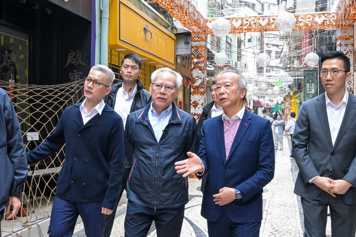 隨後,岑浩輝一行轉往氹仔,到農曆新年氹仔舊城區臨時行人專用區視察,並沿路不時向居民、旅客及商戶拜年,親切互動。