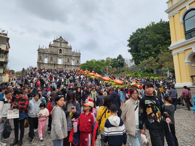 春節黃金周即將結束,繼大年初三和年初四本澳一連兩日錄得入境旅客超過21萬人次後,進入黃金周假期後半段的年初五入境旅客人數稍有回落,全日入境旅客共有18.9萬人次,同比升6.9%,是連續第三日同比錄得升幅;當中內地旅客佔比最多有15.4萬人次,同比上升6.1%,同樣是連續第三日同比錄得升幅;年初五入境港客有2.6萬人次,同比升5.3%,亦都是連續第三日同比錄得升幅,但升幅較最年初三和年初四的兩成和三成七明顯放緩。