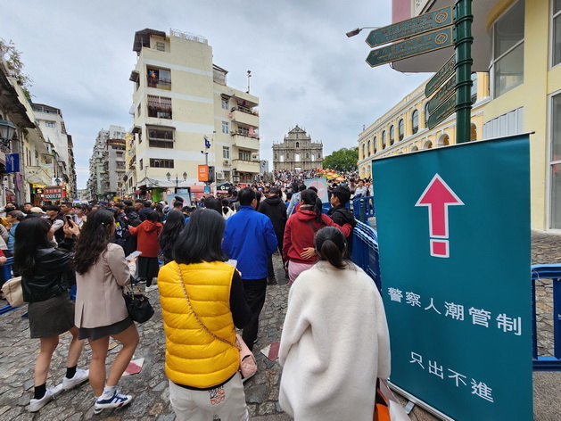 年初六截至下午五時入境旅客有14.2萬人次,較年初五同期減少兩萬多人次,繼續呈下降趨勢,但人數已超過平日甚至是周末假期,由於大量旅客繼續紛至沓來,警方於下午2時20分連續第五日在大三巴街實施單向人潮管制措施,措施至下午3時50分結束,歷時約一個半小時。