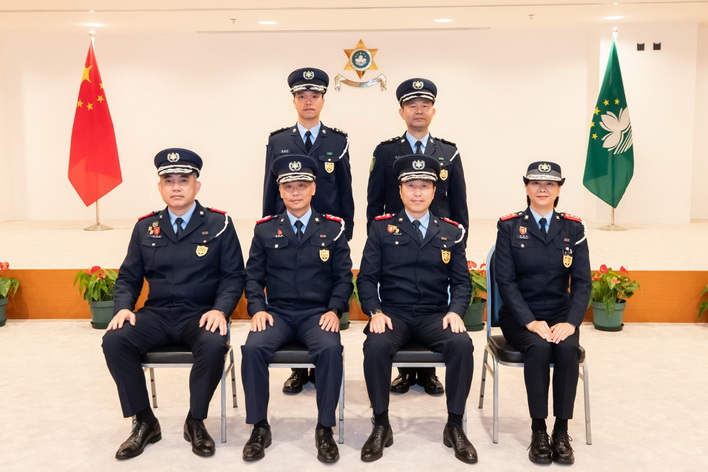 【本報消息】治安警察局舉行了警務總長、副警務總長、警司及高級警長晉升儀式。儀式由局長吳錦華主持,副局長黃偉鴻、梁慶康、伍素萍及各部門主管亦出席儀式,為晉升同僚致賀。