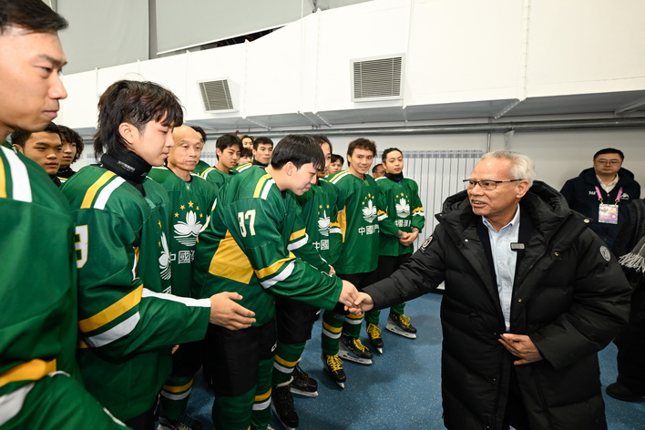 【本報消息】行政長官岑浩輝一行傍晚抵達黑龍江省哈爾濱市後,與參加第九屆亞洲冬季運動會的中國澳門體育代表團見面,並為運動員打氣。