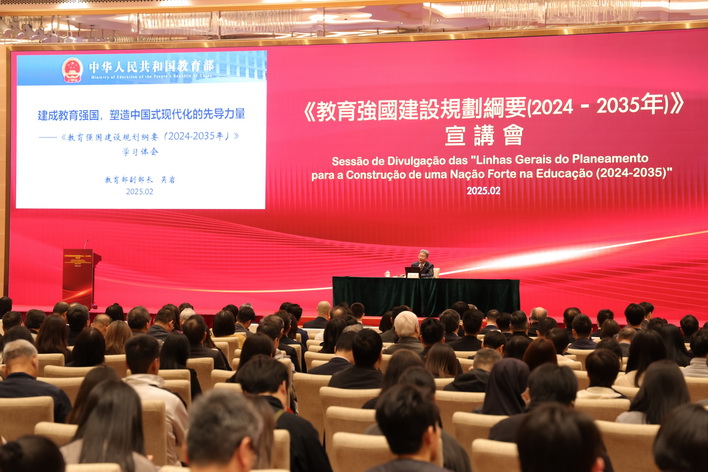 吳岩為澳門教育界宣講《教育強國建設規劃綱要(2024-2035年)》的主要內容,從建成教育強國的底氣、建成教育強國的目標、建成教育強國的任務三方面,對《規劃綱要》作了全面闡釋和系統解讀,讓澳門教育界深刻認識國家對教育事業的全面部署和長遠規劃。