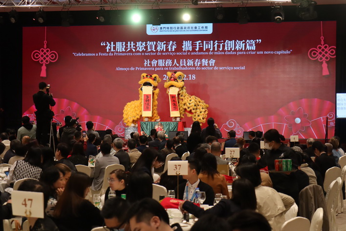 社會工作局周二中午假漁人碼頭會議展覽中心舉行「社服共聚賀新春 攜手同行創新篇」社會服務人員新春餐會,約600名社服界代表和社會各界人士出席。