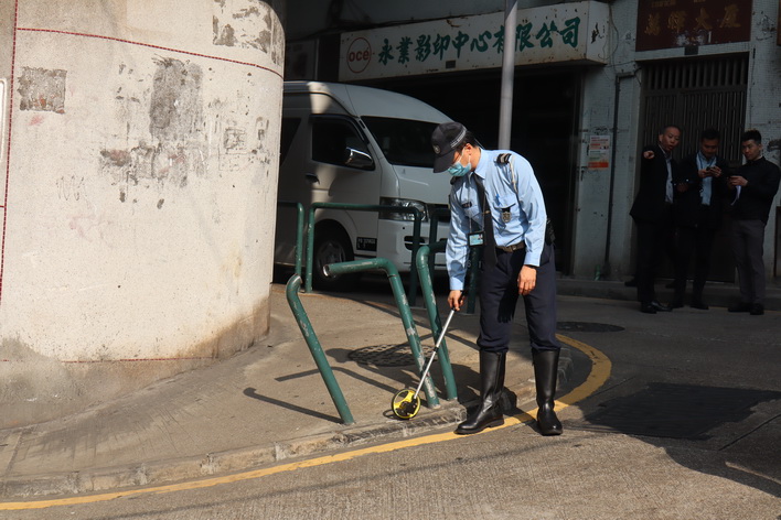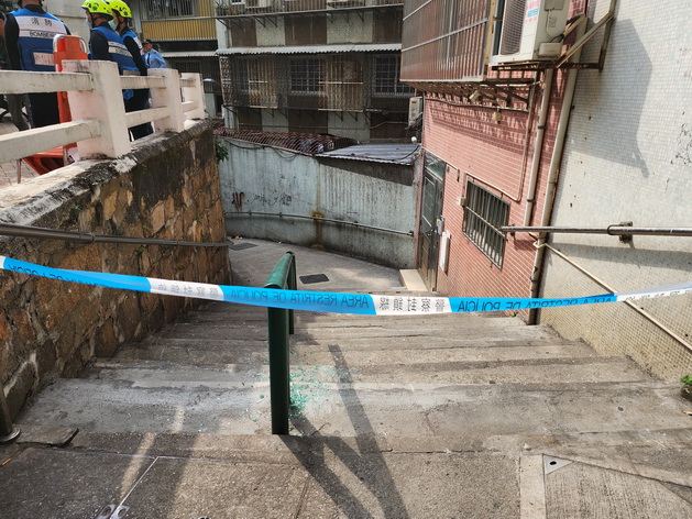 事發後劇組工作人員在亞堅奴前地休憩區等候有關方面處理事件,肇事車輛衝落的三層樓斜巷是一條有梯級的人行通道,居民平日用來往返紅窗門至司打口一帶,事發後需要封閉;意外吸引不少街坊在場圍觀,尤其對肇事車輛能夠衝落有鐵護欄分隔的三層樓斜巷嘖嘖稱奇,現場所見,肇事車輛衝落梯級後並再往幾十米,右方撞到行人金屬扶手後停下,車側留有大量刮痕,車尾亦有配件脫落,並留有大量玻璃碎片在梯級處。