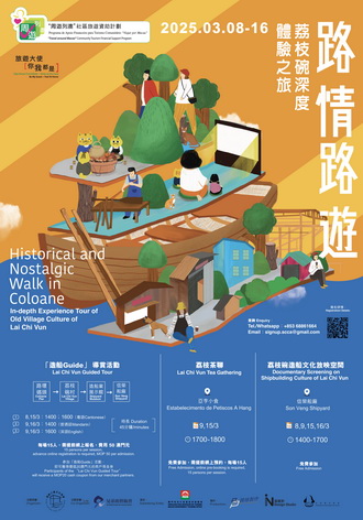 「路情路遊」在3月8至16日期間的周六日舉行,內容包括「造船Guide」導賞活動、「荔枝茶聊」和「荔枝碗造船文化放映空間」三個項目,讓參加者踏進荔枝碗村,走入造船文化影像空間,細聽澳門百年造船工藝和歷史故事,還可以喝一口茶,回味村落的古樸和遺美。其中導賞活動分別設粵語、普通話及英語場次供選擇。
