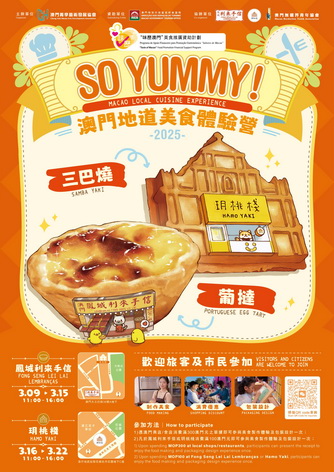 「So Yummy!澳門地道美食體驗營」於3月9日至3月22日期間分別在兩間手信店和小吃店舉行,參加者可體驗製作及包裝澳門地道美食葡撻及三巴燒,締造有趣且獨特的遊澳回憶。