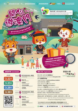 活動詳情可參閱活動海報或聯絡各主辦單位查詢。旅遊局將繼續透過2025年度的「周遊列澳」社區旅遊資助計劃、「味歷澳門」美食推廣資助計劃及「濱海遊樂」海上旅遊資助計劃,推動社區旅遊,進一步刺激澳門社區經濟。