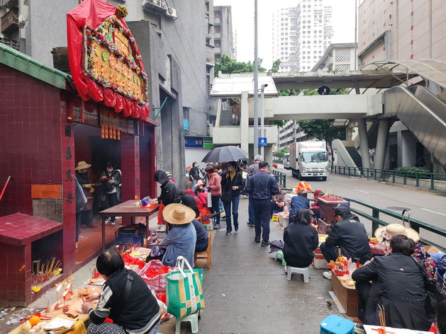 周三本澳雖然氣溫稍降且不時落起微雨,但無礙居民到巴波沙大馬路福德祠「打小人」,早上多位拜神婆早已帶備祭祀用品到場,為居民提供「打小人」一條龍服務,由朝到晚到場「打小人」的居民絡繹不絕,即使到了下午雨勢不時稍大,仍然無阻居民在現場排隊等候,「專業打手」則冒雨為居民「打小人」。