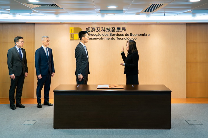 【本報消息】經濟及科技發展局副局長鄭曉敏及陳祖榮19日宣誓就職,就職儀式在經科局舉行,由經科局局長邱潤華主持,經濟財政司司長戴建業及經濟財政司司長辦公室主任羅志輝出席見證。