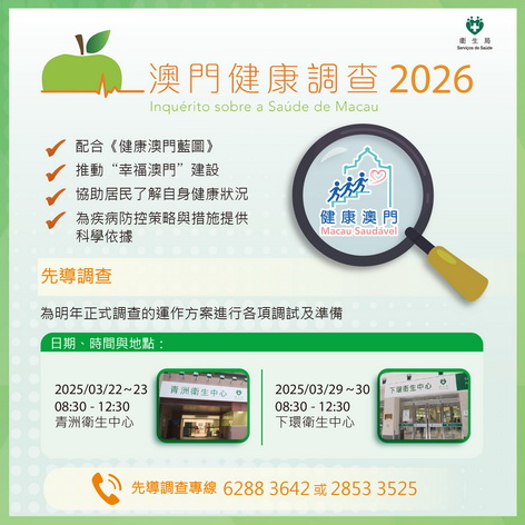 「澳門健康調查2026」舉行先導調查