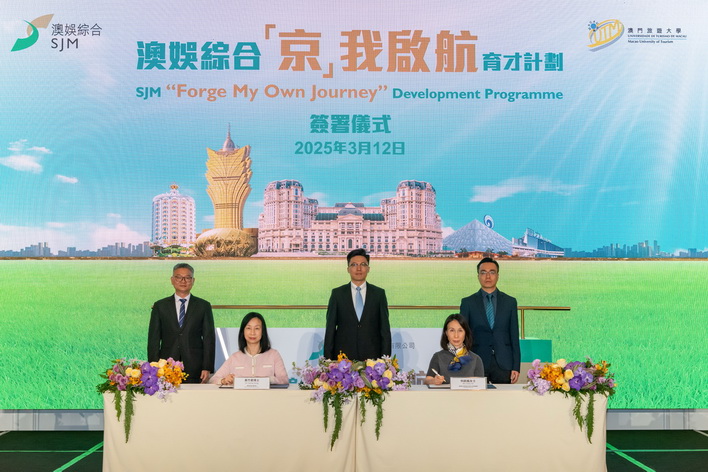 【本報消息】澳娛綜合與旅遊大學合辦「澳娛綜合『京』我啟航育才計劃」,並於日前舉行簽署儀式暨啟動禮。「京」我啟航計劃將於今年推出,通過創新產教融合模式,為本澳青年提供理論與實踐並行的學習機會,致力為澳門綜合旅遊休閒業儲備人才及注入新活力。