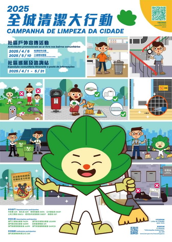 全城清潔大行動啟動儀式將於4月5日下午在祐漢街市公園舉行,市政署、衛生局、環境保護局、公共建設局、土地工務局、經濟及科技發展局、旅遊局等多個部門及社團代表共同參與。
