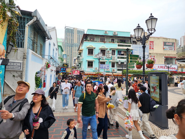 【本報消息】今年清明節剛好連著周六和周日,不只內地居民有三天小長假,不少港澳居民也連放三天,在本澳居民掃墓和外出旅遊之際,也有大批旅客利用三天小長假期訪澳,清明節假期首兩日本澳入境旅客分別錄得17.3萬和14.8萬人次,大三巴街一連兩日的下午需要實施人潮管制;至周日是假期最後一天,入境旅客人數雖然明顯回落,但市面人流依然暢旺。
