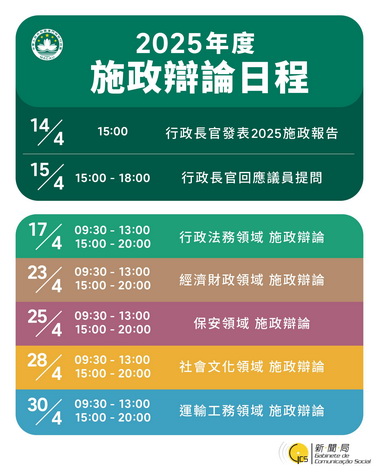 此外,新聞局屆時也在新設的Facebook葡文專頁(www.facebook.com/macaogcspt)及英文專頁(www.facebook.com/macaogcsen),發佈2025年度施政報告的資訊。