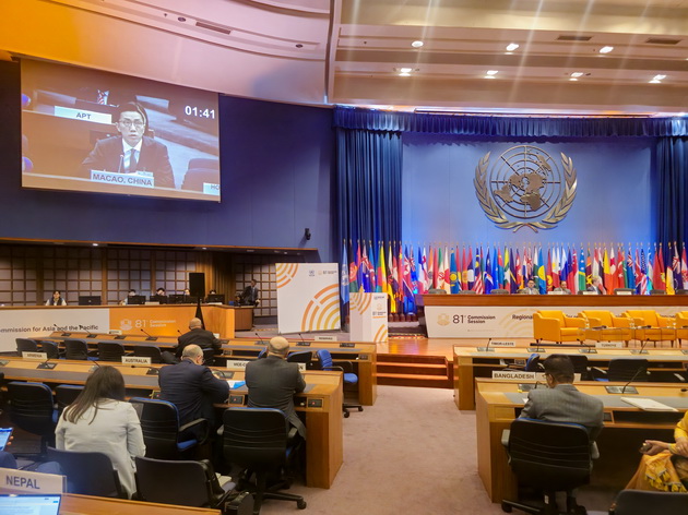 【本報消息】聯合國亞洲及太平洋經濟社會委員會(亞太經社會)第81屆會議於4月21至25日在泰國曼谷舉行。為加強澳門與其他亞太經社會成員的聯繫和交流,政府經濟及科技發展局局長邱潤華以中國澳門代表身份出席了是次會議。