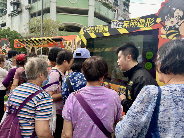 活動期間,宣傳車拓展成防騙推廣站,設多個互動主題攤位,包括提供防騙測驗卷考驗參與者防騙知識的「智慧防騙加油站」,現場講解及演示如何運用「反詐程式」識破騙局的「反詐程式你要識」,透過觸屏小遊戲寓教於樂、讓參與者在趣味中學習防騙技巧的「全民防騙大作戰」,以及為參與者拍攝附有反詐標語的個人化照片的「反詐精英齊留影」,時刻提醒參與者關注防騙資訊。