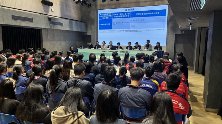 「醫療人員資格認可考試介紹會」由醫療專業委員會委員向中學生及醫療專業應屆畢業生介紹15類醫療人員的資格認可申請條件、考試安排及執業註冊制度。活動同步設線上直播,方便在本澳以外升學的學生提問交流。