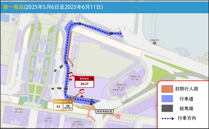 根據當局公佈的方案,第一階段工期1.5個月,主要拆卸西側圍牆及圍封局部行人道。第二階段工期兩個月,主要拆卸辦公樓,圍封局部行人道,並設置臨時行人通道。第三階段工期1.5個月,主要建造新上落客停泊區及在適當位置設隔音屏障。第四階段工期0.5個月,將對原有的巴士站、車道及行人道進行分區改造。