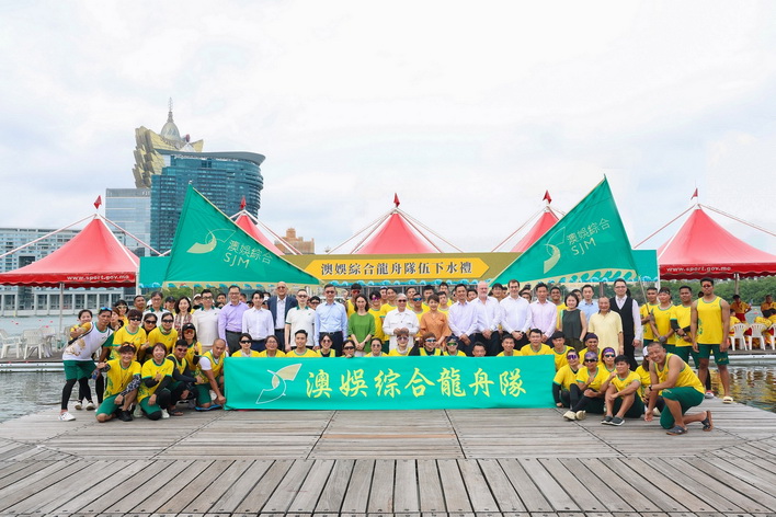澳娛綜合日前假南灣湖水上活動中心舉行「新龍舟下水儀式」及「澳娛綜合龍舟隊伍下水禮」,為新龍舟及即將參賽的龍舟隊祈求平安順利,並祝願旗開得勝。體育局代副局長李詩靈、澳娛綜合常務董事何超鳳及澳門龍舟總會理事長黃家豪等嘉賓同場出席,為14艘新龍舟主持寓意吉祥平安的祈福儀式。期後澳娛綜合董事及管理層亦為即將參賽的龍舟隊伍祈福及打氣,祈求比賽順利、風調雨順。