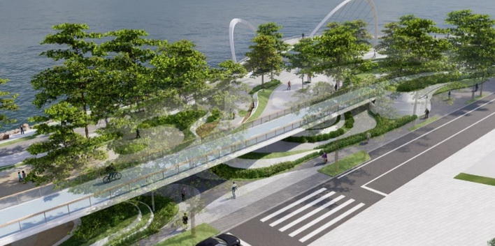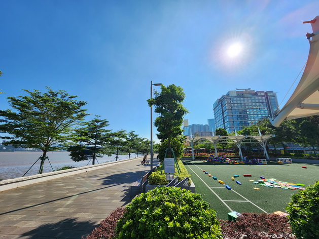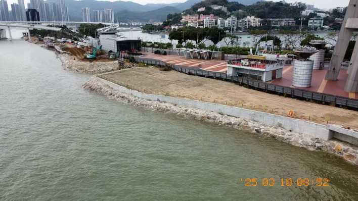 據悉,南岸海濱綠廊工程第二期分為三個區域進行,其中第一區工程包括建設球場、釣魚區木平台、海濱步道等設施,已於去年12月動工,目前在新城B區靠近嘉樂庇總督大橋一側的地面已見球場設施的混凝土地台,市政署工程資訊網顯示完工日期為今年九月完工。
