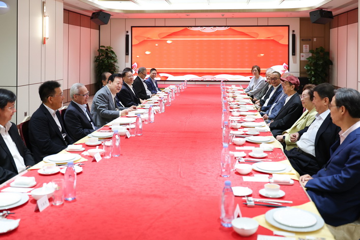 夏寶龍主任上午由行政長官岑浩輝陪同,與本澳老一輩愛國愛澳代表人士茶聚交流。