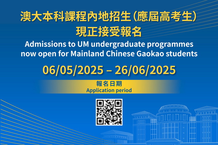 有關內地高考生入學及課程資料,可瀏覽澳大註冊處「內地高考生專頁」(reg.um.edu.mo/gk)。如有查詢可與註冊處聯絡。
