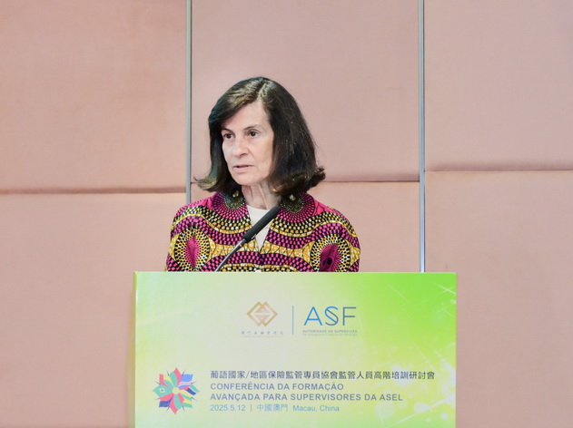 Margarida Corrêa de Aguiar在致辭中強調,面對新時代挑戰,機構合作與知識共享至關重要。今次與澳門金管局合辦高階培訓活動,正是澳門與葡萄牙監管合作的成果,旨在提升行業技術能力,並促進保險行業的實踐經驗交流。她並指出,隨著數字化轉型、網絡風險以及人工智能重塑保險業,監管框架需相應調整,以在技術創新、金融穩定與消費者保護間取得平衡。