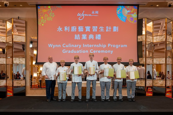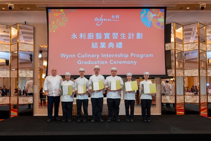 【本報消息】在教育及青年發展局的倡議下,永利與中葡職業技術學校開展「校企合作」,自 2021年起推行「永利廚藝實習生計劃」,助力為澳門培育餐飲業人才,為本地青年提供多元職業選擇。該計劃自開辦以來迄今已成功培育近40名中葡職業技術學校廚藝專科學生,持續為澳門餐飲業發展儲備人才。日前,第四屆「永利廚藝實習生計劃」畢業典禮於永利皇宮圓滿舉行,參與計劃的學員順利完成為期一學年的實習培訓後,在多名嘉賓及家長們的見證下獲頒畢業證書,成為具備專業素質的廚藝新力軍。