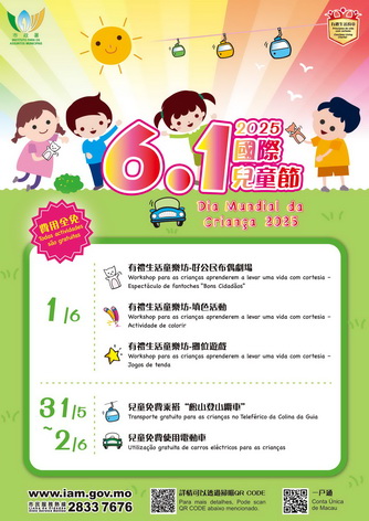 有關詳情,可掃描宣傳海報上的二維碼、瀏覽市政署公民教育資訊網(www.iam.gov.mo/civicedu)或致電市民服務熱線2833 7676查詢。