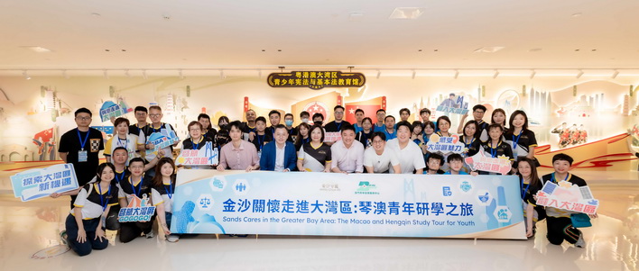 【本報消息】金沙中國及澳門青年發展服務中心日前合辦「金沙關懷走進大灣區:琴澳青年研學之旅」,由金沙中國的義工金沙中國關懷大使及來自挪亞青年成長發展中心及聖公會青年領袖發展中心的青年一行合共44人前往橫琴實地參觀研學,瞭解橫琴粵澳深度合作區及粵港澳大灣區的發展現況。