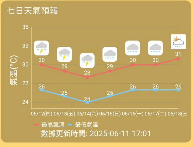 料周末間中有狂風驟雨雷暴