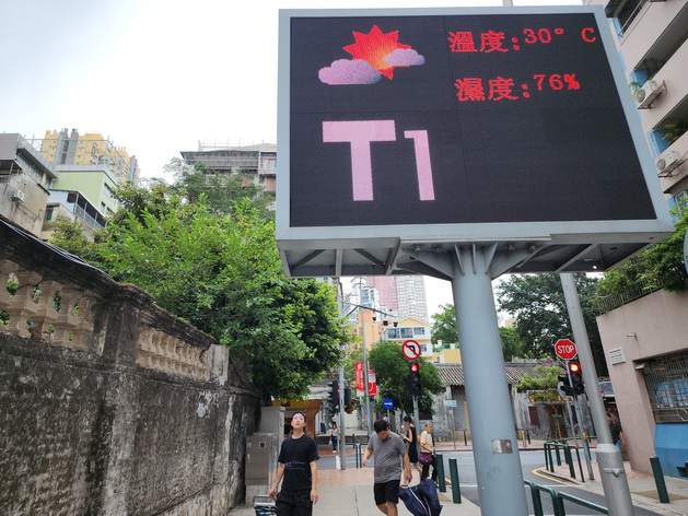 周三日間本澳受「蝴蝶」及一道高壓脊共同影響,橋上風力間中達到六級,預料周四天氣大致多雲及短暫時間有陽光,間中有驟雨及有幾陣雷暴,吹四至五級偏東風,間中六級及有陣風,氣溫約為攝氏26至30度,相對濕度介乎百分之75至98之間,預測最高紫外線指數約為七、級別屬於高。氣象局指由「蝴蝶」 移向海南島期間與本澳距離保持約600公里,除非持續受其外圍雨帶及強風影響,否則周四清晨改掛三號風球機率為中等。