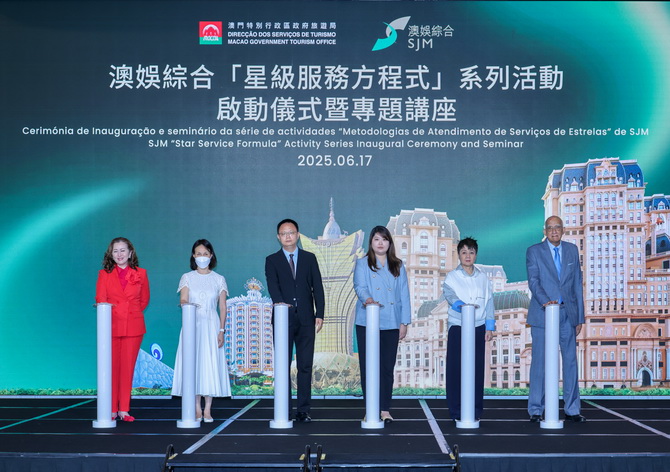 【本報消息】旅遊局與澳娛綜合首度合辦「星級服務方程式」系列活動,並於日前舉行啟動儀式及舉行首場專題講座,活動在本月至今年下半年將陸續舉辦四場專題培訓。活動面向旅遊業界從業員、澳門大專院校師生及澳娛綜合員工,旨在提升澳門旅遊服務專業度,為將投入職場的大專生提供培訓,培育本地人才,促進旅遊服務業高質量發展,鞏固澳門「世界旅遊休閒中心」地位。