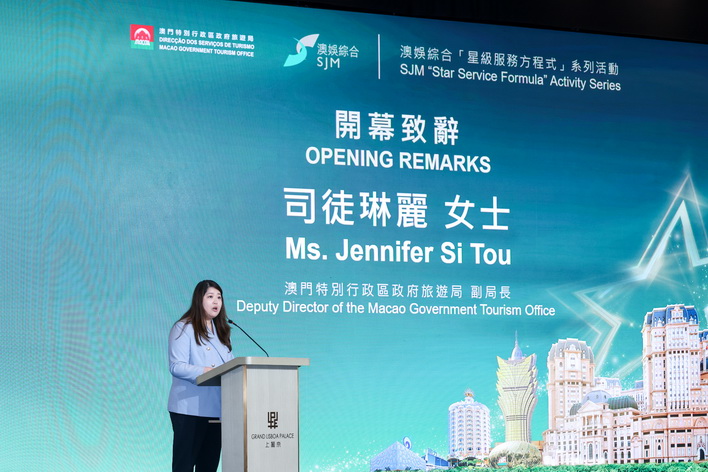 旅遊局副局長司徒琳麗、澳娛綜合常務董事何超鳳及旅遊業界代表等出席了系列培訓啟動儀式,司徒琳麗致辭時表示,「星級服務方程式」系列培訓活動旨在提升專業技能和服務質量,除了業界,亦有澳門大專院校學生參加專業培訓,為未來發展培育人才。期望透過多樣化培訓,賦能從業人員,與時並進,力求創新,提升澳門旅遊業的競爭力,讓居民和旅客體驗賓至如歸的「星級」服務,合力做優做精做強綜合旅遊休閒業。