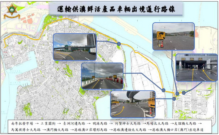 治安警察局呼籲,運輸供澳鮮活產品車輛駕駛者應提前了解和熟悉通行路線,注意交通安全,車輛於口岸通關離境時,應遵從現場警員指示,配合出境查驗有序通行,同時可透過治安警察局「出入境事務站實時資訊平台」及交通事務局手機應用程式掌握口岸車流及道路交通實時情況。