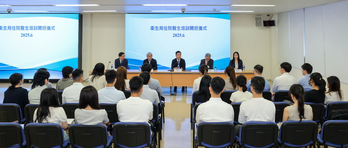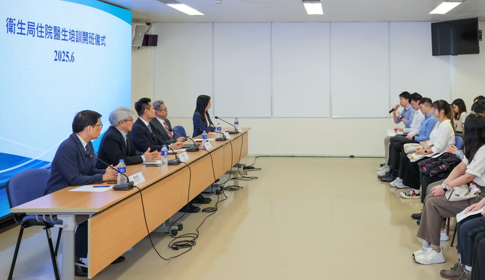 【本報消息】衛生局於日前舉行新一屆住院醫生培訓及開班儀式,亦是新醫學專科培訓及認可制度實施後首屆住院醫生的培訓及開班儀式。衛生局局長羅奕龍、醫學專科學院專業委員會主席李展潤、衛生局副局長郭昌宇、鄭成業和疾病預防及控制中心主任梁亦好等,與25位住院醫生進行了深入交流,聽取其對培訓的期望及建議。